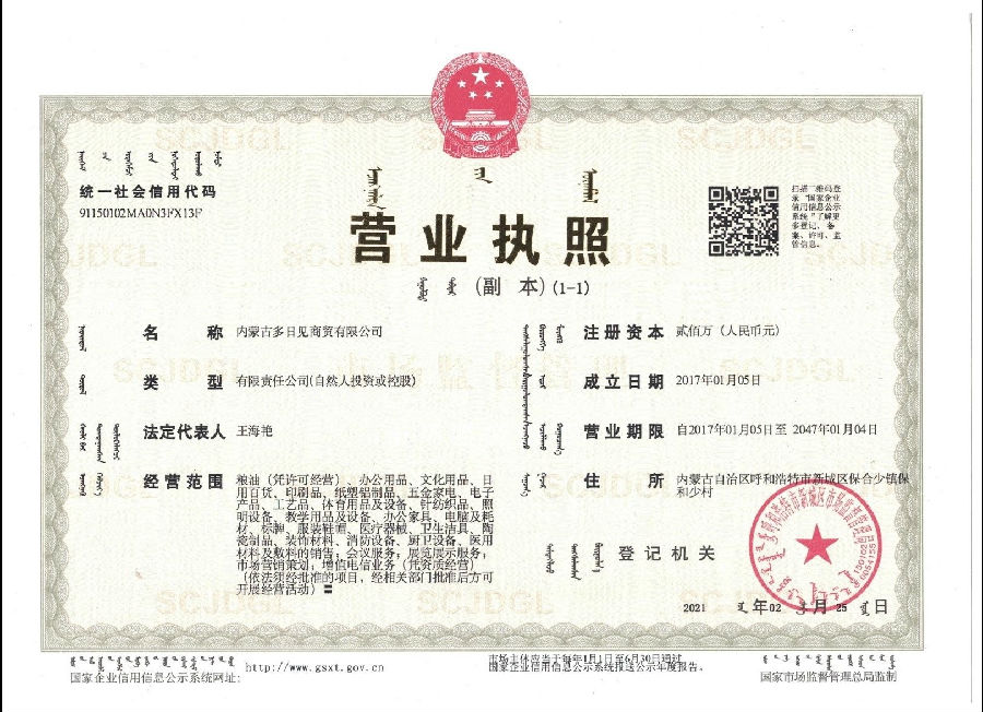 您好,歡迎訪問 內(nèi)蒙古多日見商貿(mào)有限公司